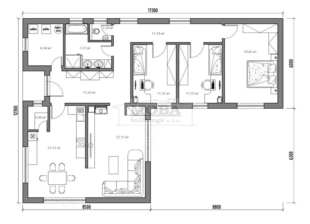 *v prípade montovaného domu je úžitková a obytná plocha väčšia.