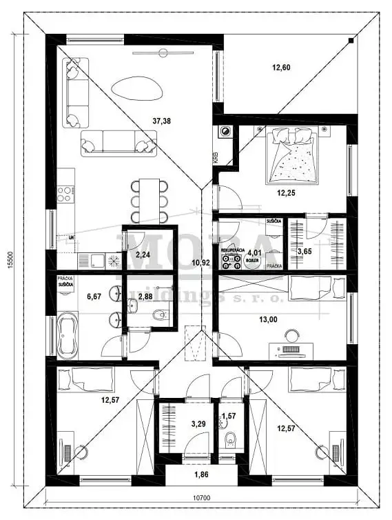 *v prípade montovaného domu je úžitková a obytná plocha väčšia.