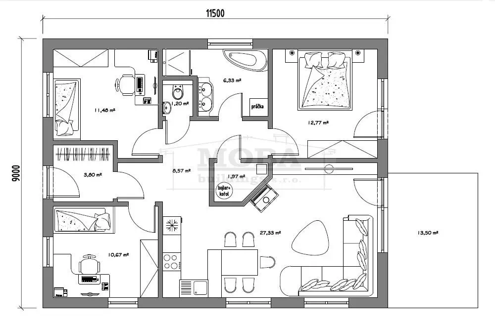 *v prípade montovaného domu je úžitková a obytná plocha väčšia.