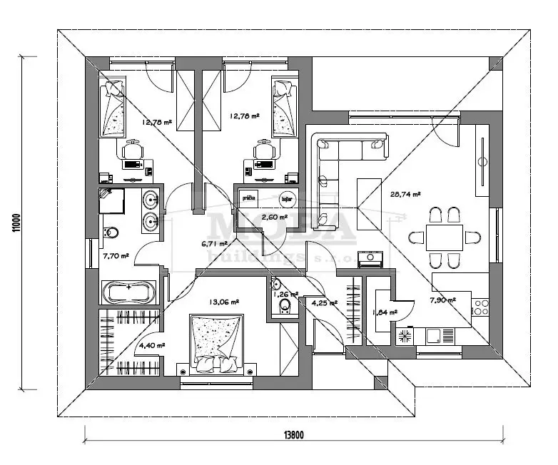 *v prípade montovaného domu je úžitková a obytná plocha väčšia.